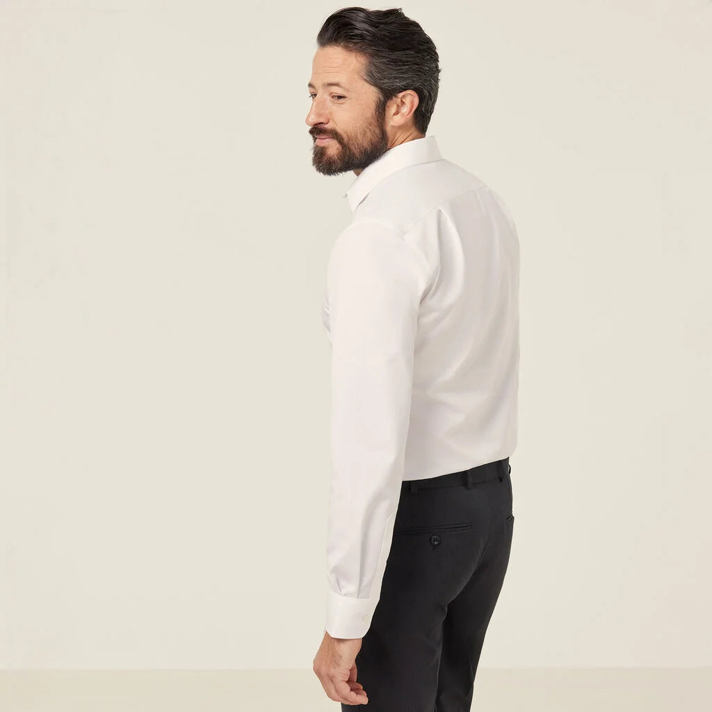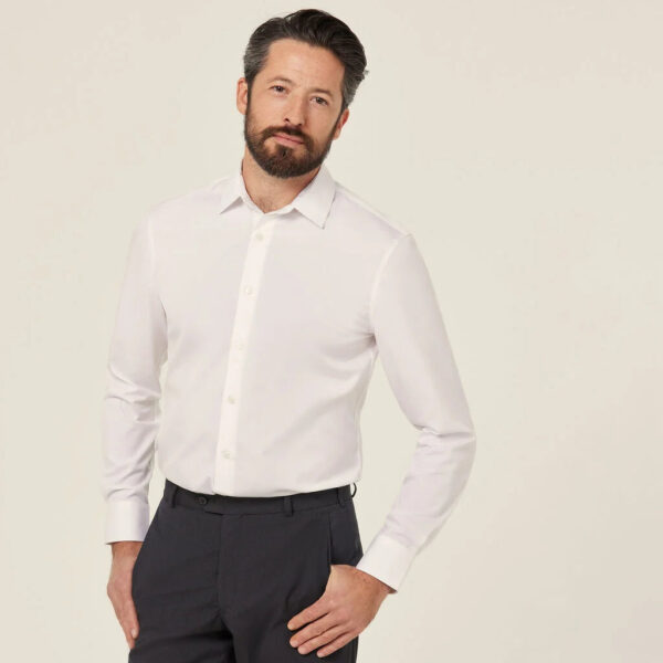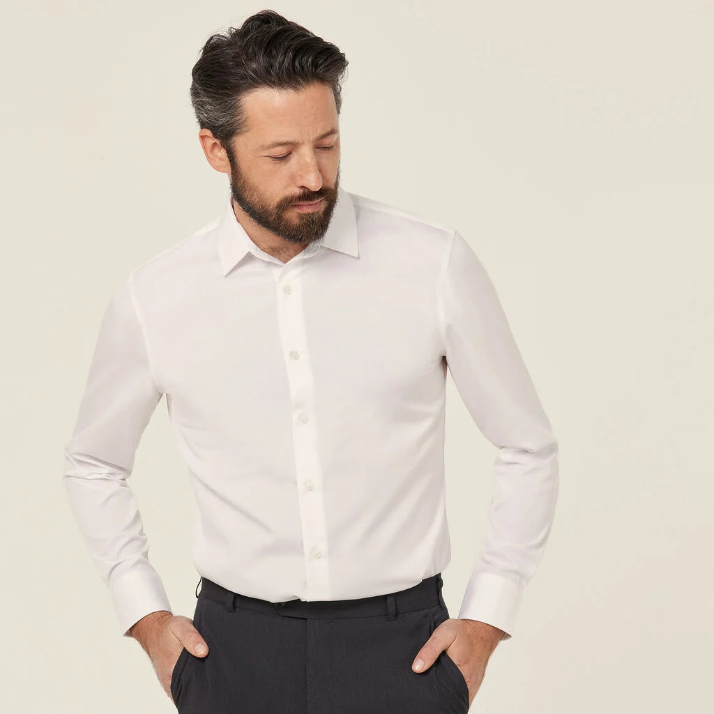 The perfect white shirt does exist. Meet our new Long Sleeve Cotton Shirt, set to become a workday favourite. It’s cut from 100% cotton that’s naturally breathable and so comfortable to wear. This premium design features inbuilt collar stays and an adjustable combination cuff which can be worn with cufflinks when desired. Pleats at the back yoke allow extra room to move, as does the shirt-tail hemline. The slim fit silhouette looks sharp when tucked into tailored trousers, offering a contemporary finish with a high-quality feel.