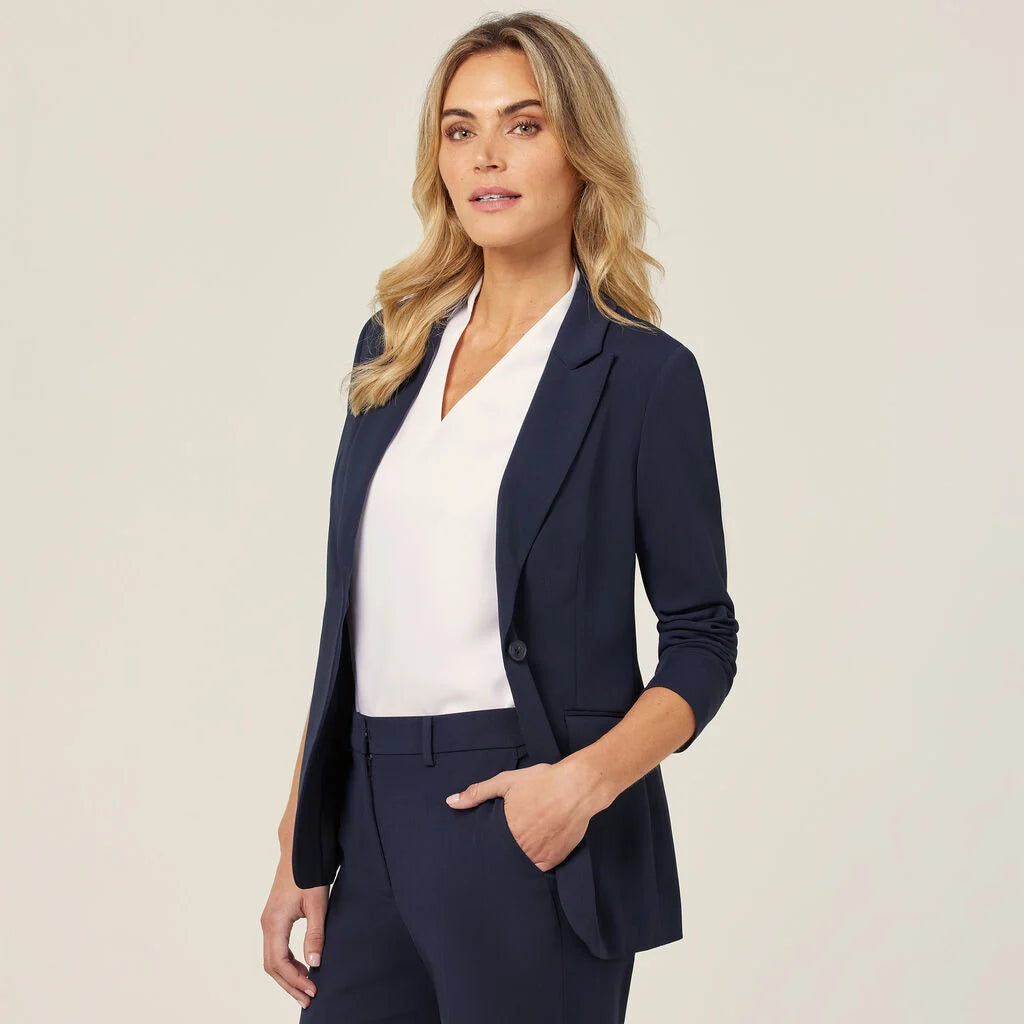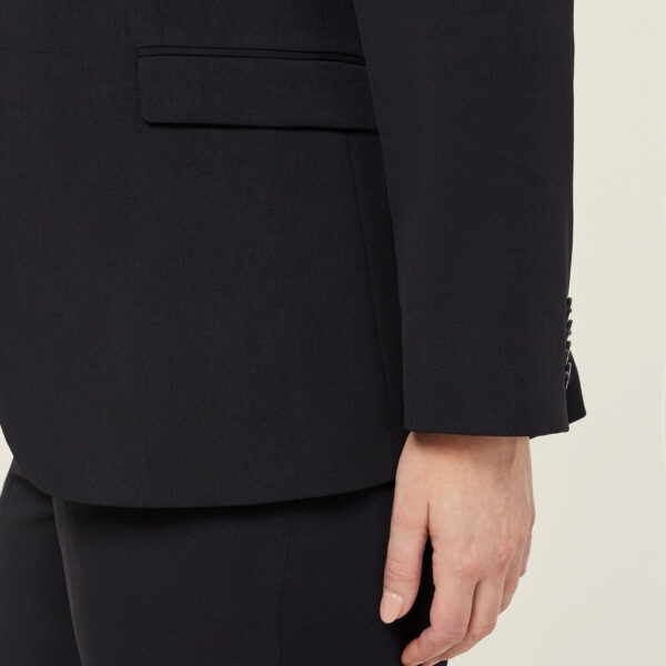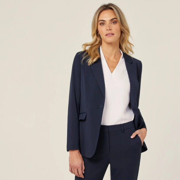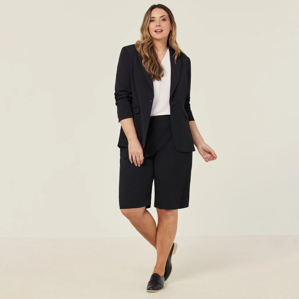 Reconsider the way you feel about suiting in the new Crepe Stretch Relaxed Longline Jacket. Cut from a luxe, lightweight fabric that offers a hint of stretch and a beautiful drape, this modern design looks and feels effortless. The streamlined, single-breasted silhouette features a single button closure and functional pockets. It comes fully lined for a premium finish and offers an action back pleat and single back vent for added ease. Style yours with the matching Cropped Pant or Knee Length Short for a fresh take on tailoring.