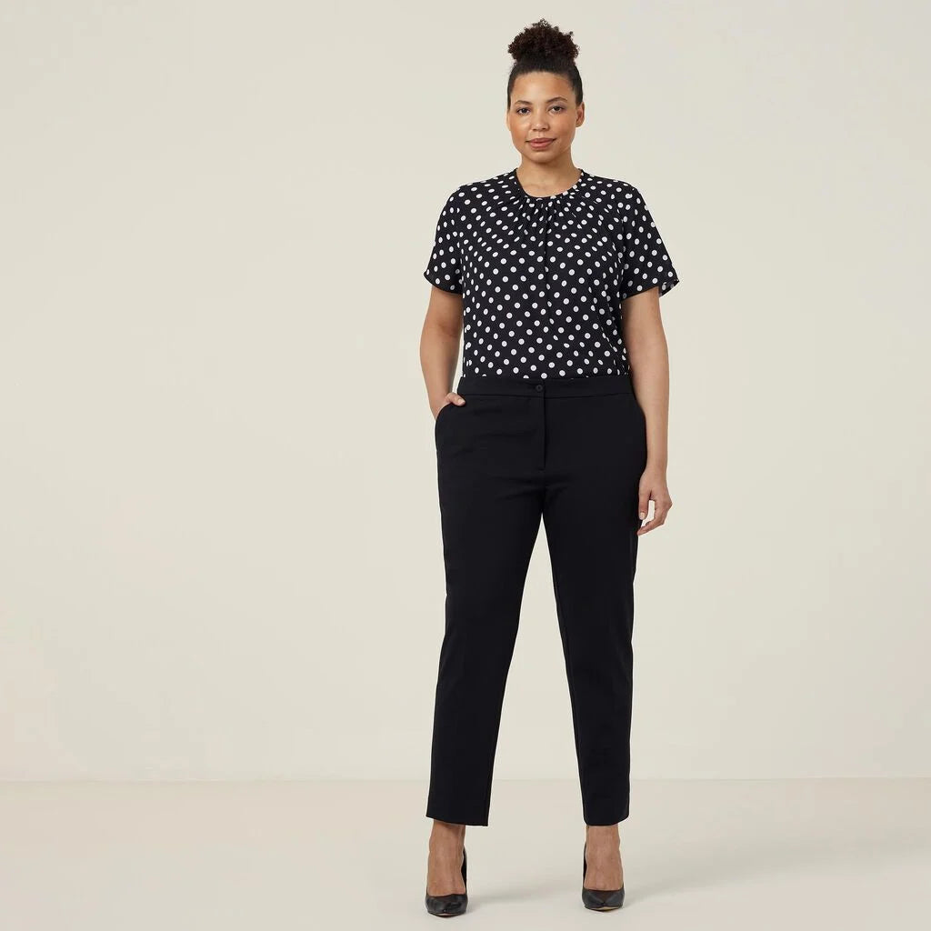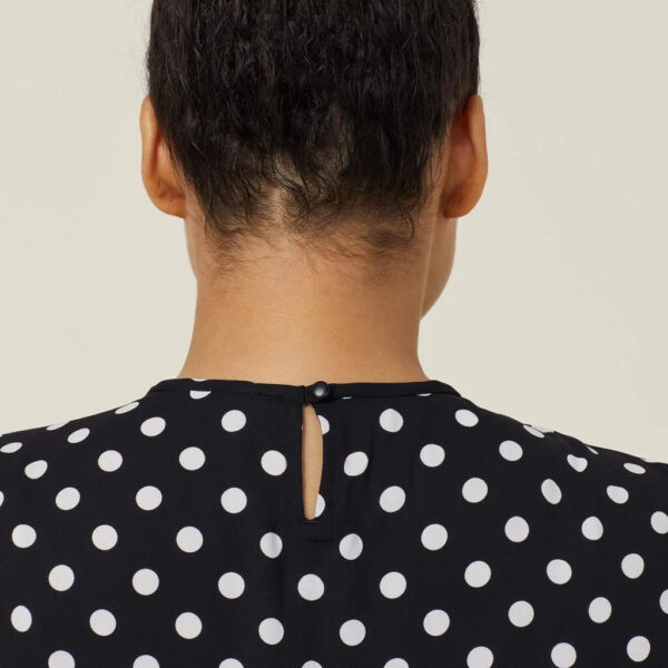 It’s a print that never goes out of style. Stamped in pretty polka dots, the Georgie Short Sleeve Blouse is instantly elevated. Subtle styling details, including a demure round neckline, soft gathering at the front and a delicate keyhole button closure, add to piece’s broad appeal. Lightweight and comfortable, it has been mindfully crafted using recycled polyester. Team your top with smart navy tailoring for on-trend elegance.