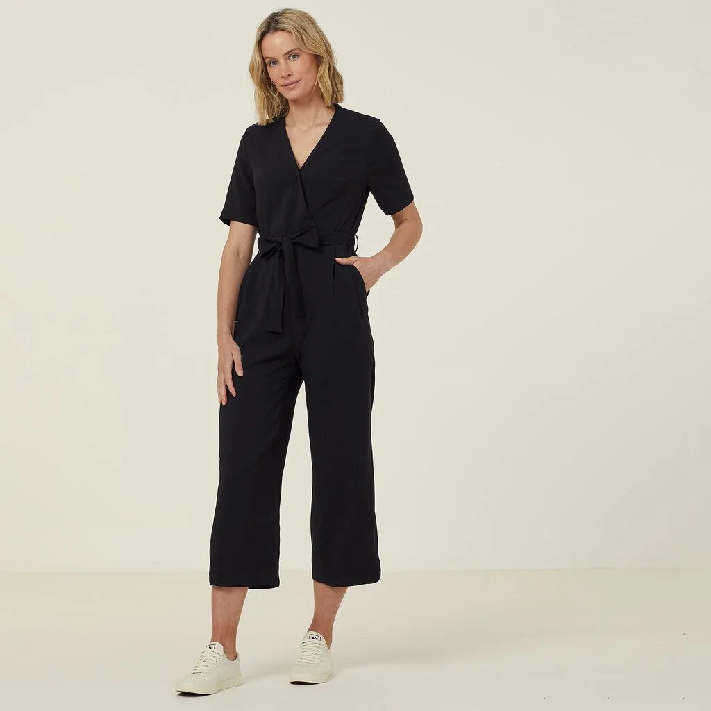Turn to the Short Sleeve Jumpsuit for an effortless way to dress for work. The tailored design is fashion forward yet highly functional and exceptionally flattering to wear. A crossover neckline is fastened with an invisible button to keep the look in place, while small pleats at the waist create a flowing feel that isn’t too fitted. A straight-cut leg and ankle length hemline echo the easy vibe. Wear yours with the optional tie belt to cinch in the waist and add heels for a put-together look. Or wear it loose and throw on a pair of white trainers for a relaxed take on tailoring.
