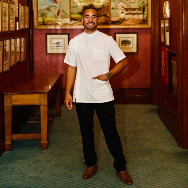 The Helix Dry Pharmacy Jacket is the perfect fusion of form and function. A tailored fit and high neckline with press stud fastening looks smart and clean, while a chest and hip pocket dial up the practicality. It’s cut from our revolutionary mechanical stretch Helix Dry fabric, which is both extra durable and supremely comfortable. It features quick dry technology to keep you fresh, and is machine washable on a gentle cycle, making it so easy to care for on a busy schedule.