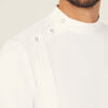 - High neckline with press stud fastenings at neck and shoulder