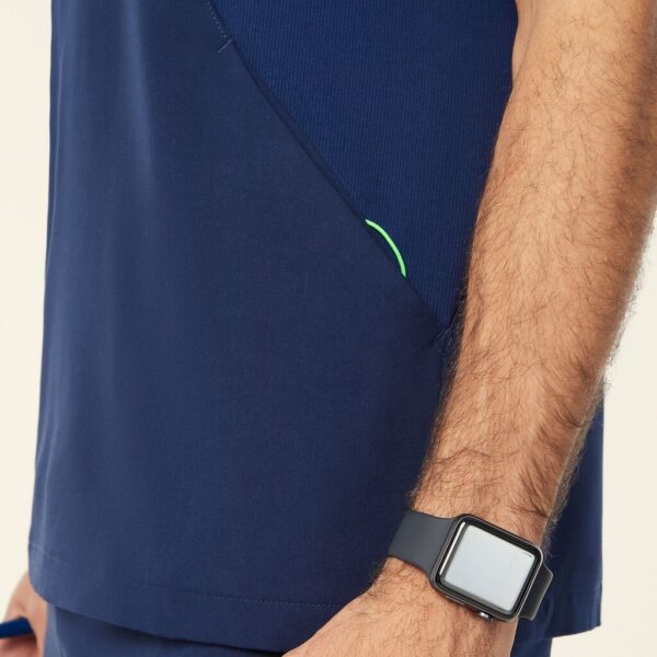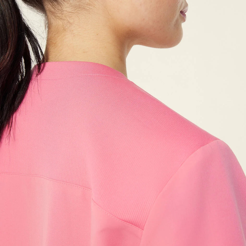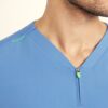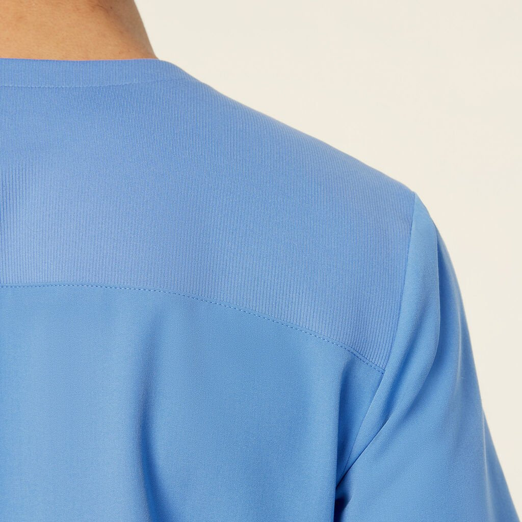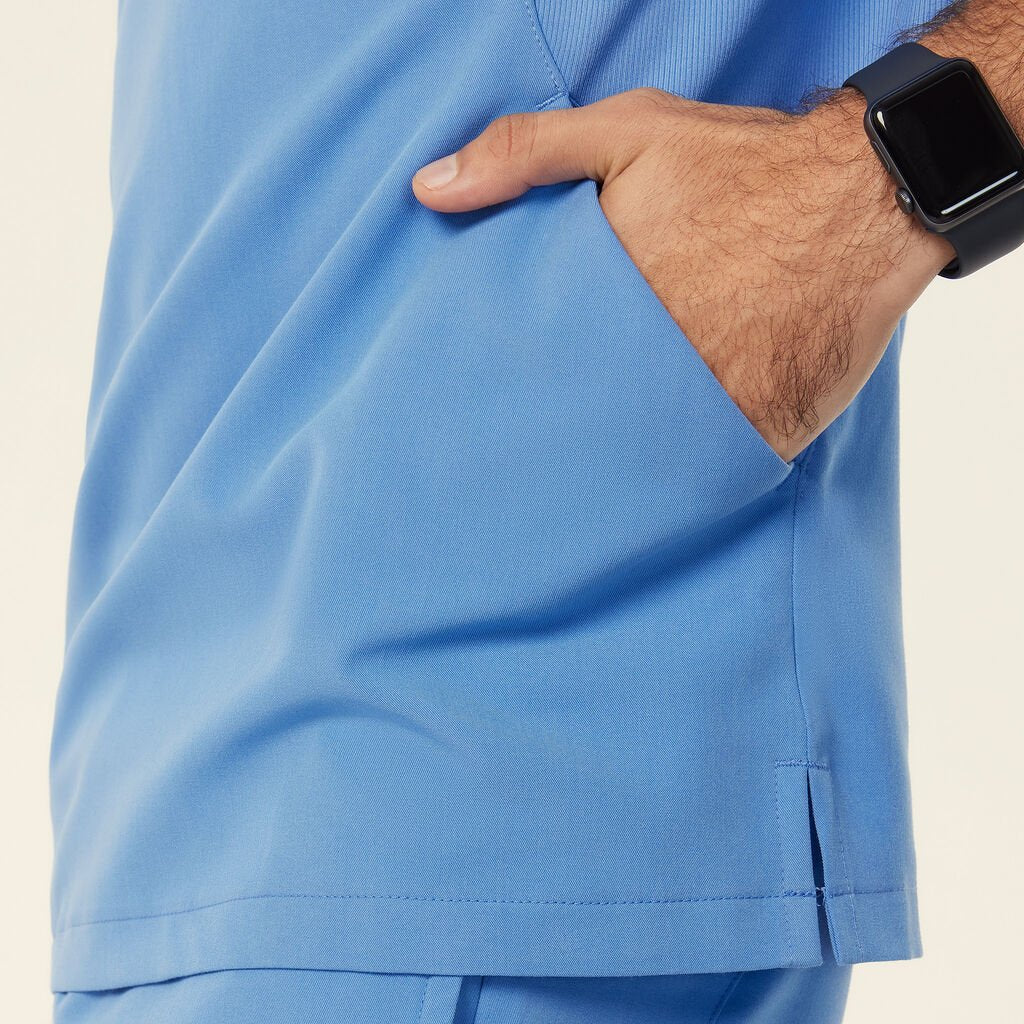 The Charles Scrub Top combines a slim fit with sleek, functional design. Featuring a V-neck opening and a center front zip, it offers ease of wear and a customizable fit. With short sleeves and a mid-length cut, this top provides both comfort and style. Two hip pockets offer practical storage, while contrast key loops at the shoulder and one pocket add a stylish touch. Side splits enhance movement, and the high-stretch rib fabric side panels ensure extra stretch and comfort for all-day wear.