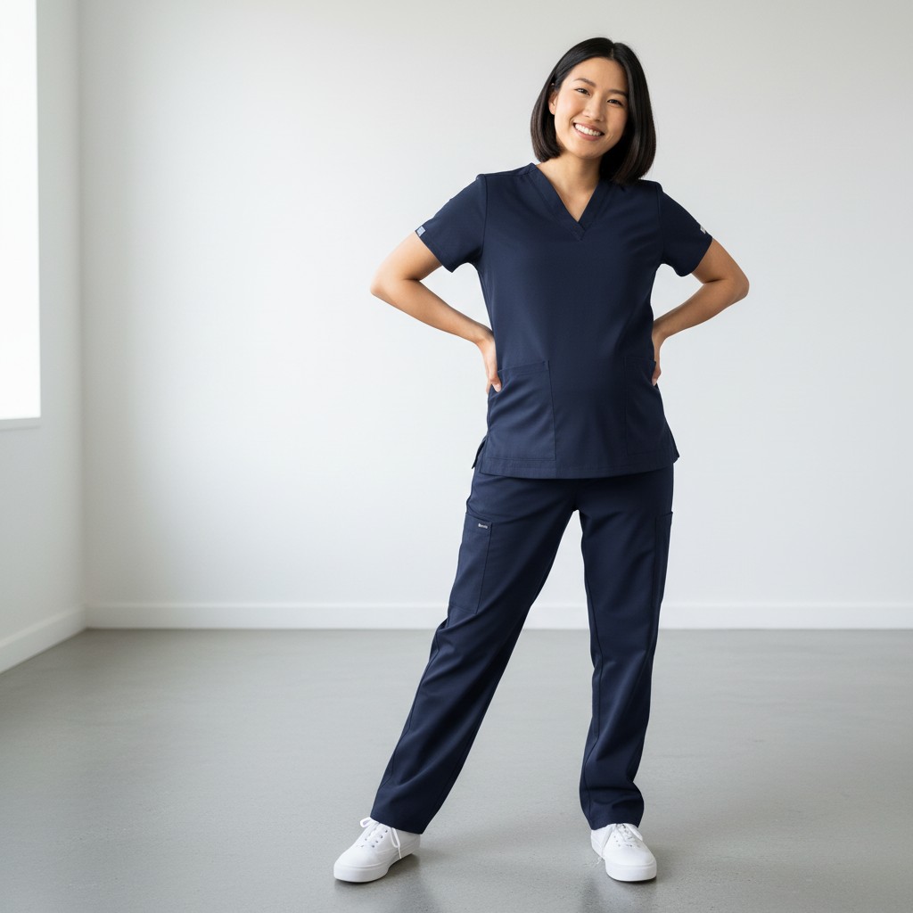 - V-Neck top, set in sleeves, side vents, size identification colour loop sewn next to main label