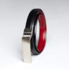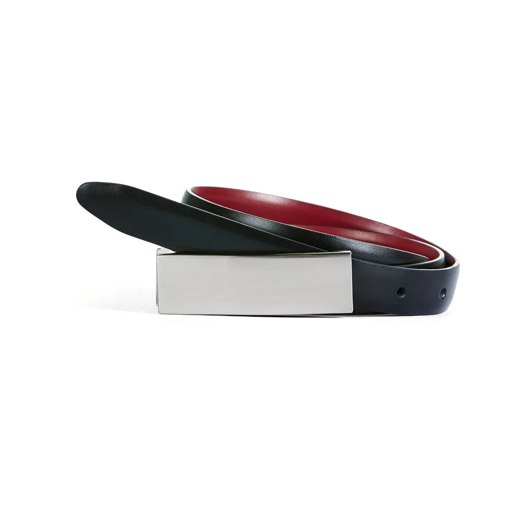 Change up your look in moments with our clever Reversible Belt. The genuine leather fabrication is cast in chic black on one side and a rich poppy red on the reverse. Choose to add a coordinating or contrasting pop of colour, depending on your outfit. The streamlined metal buckle can be twisted 180 degrees so it sits perfectly flat, no matter which shade you decide to show off. The belt’s slimline proportions and sleek hardwear with bring modern polish to tailored suiting.