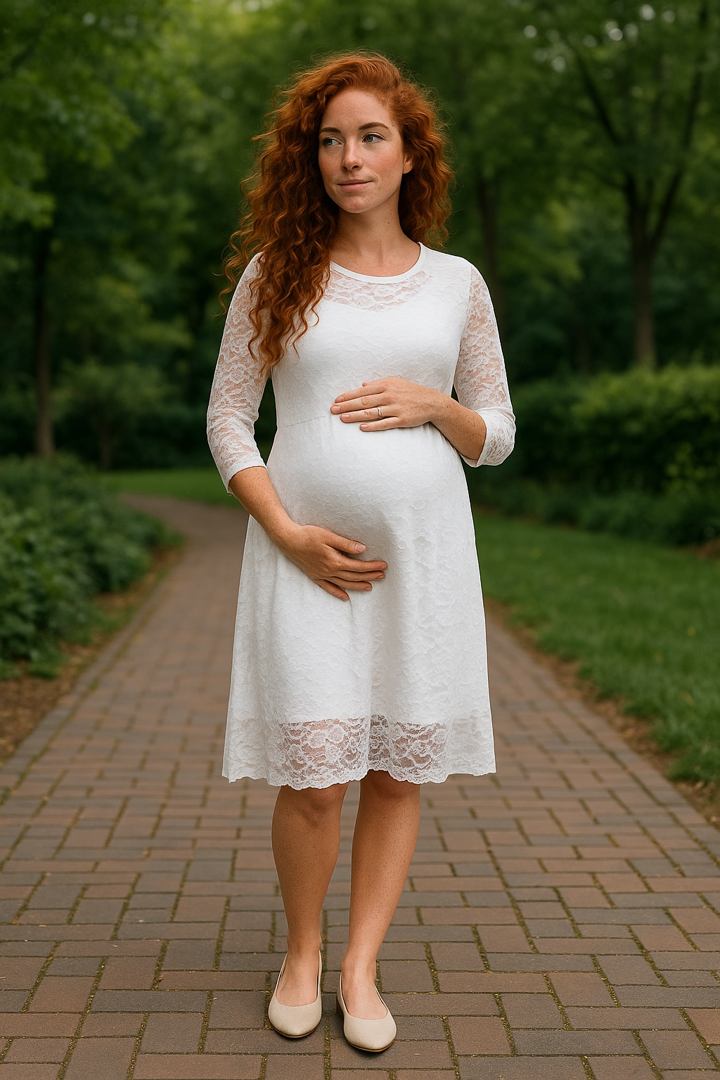 Elevate your maternity wardrobe with this beautifully crafted lace pullover dress, designed to celebrate both pregnancy and breastfeeding with effortless style. The outer layer features a delicate blend of 91% nylon and 9% spandex lace, offering gentle stretch and intricate texture, while the 95% cotton and 5% spandex lining ensures breathable softness against the skin.