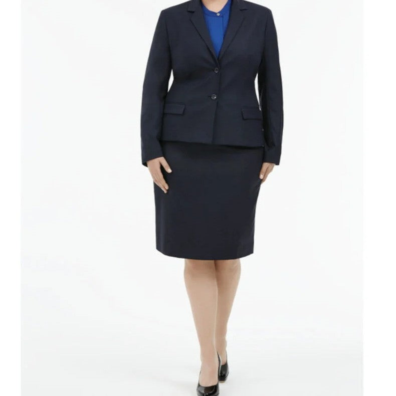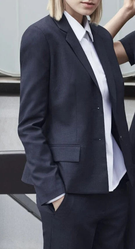 Our richly textured Sharkskin fabric imparts subtle sophistication to our bestselling 2 Button Mid Length Detail Jacket. In inky blue-navy tones or a smoky charcoal black, this sharply tailored yet comfortable piece will ensure you feel as good as you look. Fully lined and featuring functional pockets, the classic cut is designed to skim the figure for a flattering finish that works perfectly in any corporate environment.