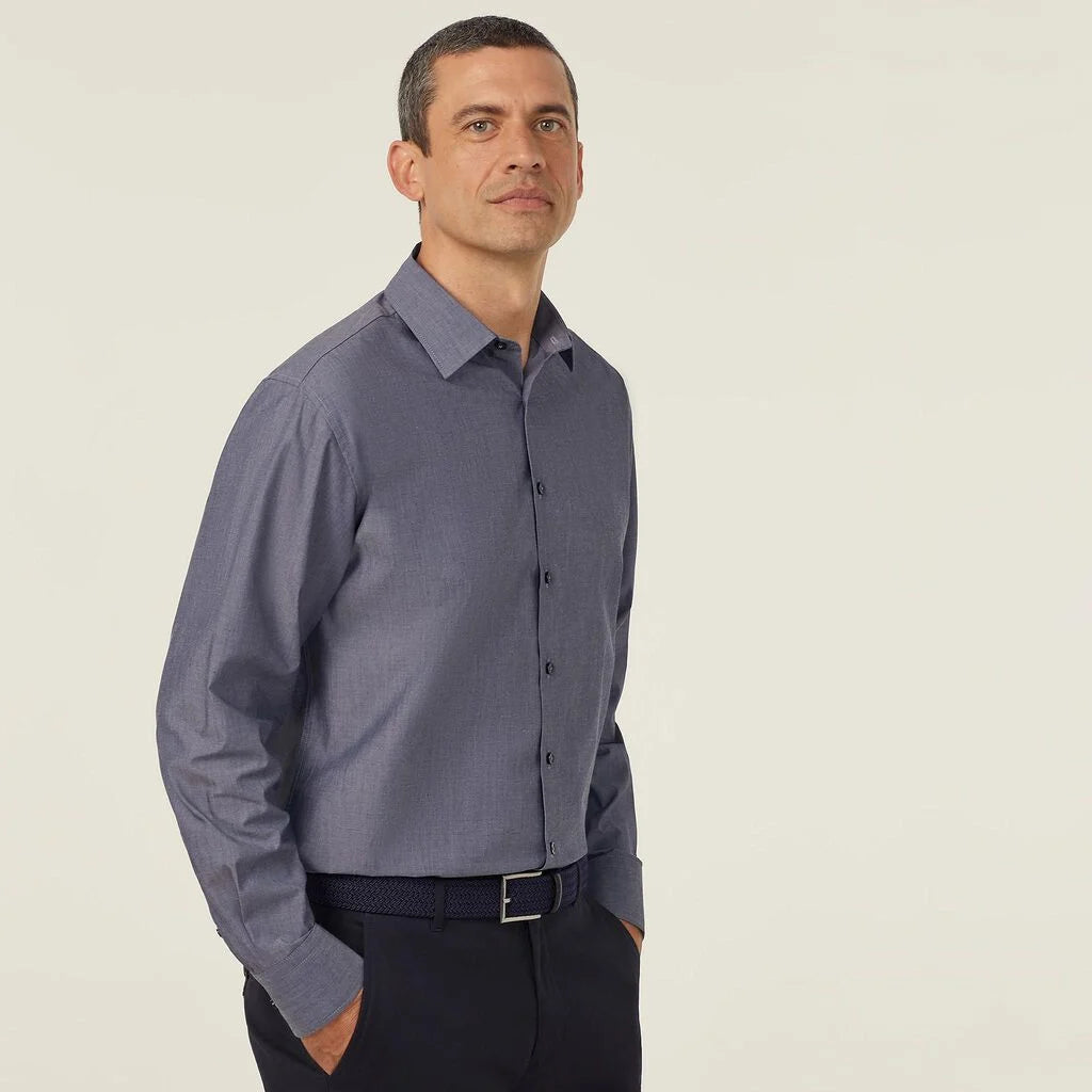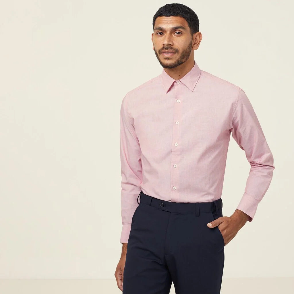 With its classic silhouette and modern slimline collar, our textured Long Sleeve Shirt delivers a fashionable take on this workday staple. The tailored design with its smart button cuffs is cut from our cotton-rich End on End fabric that adds subtle interest with a two-tone crosshatch finish for an elevated take on an essential piece. It’s available in four soft shades that will add personality to your look. We like to cuff the sleeves into a shorter style for a more relaxed take.