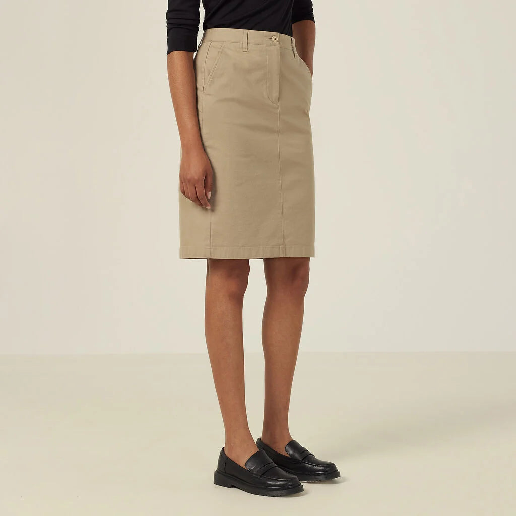 With its smart slim-fit styling and flattering knee-length hemline, the reimagined Chino Skirt offers a modern and functional take on new-season workwear. It’s cut from our soft stretch cotton that’s durable and easy to care for, making it ideal for warm days at work. A handy back vent offers extra room to move, and there are plenty of pockets to store your essentials. Style with a crisp white tee or shirt for effortless cool.